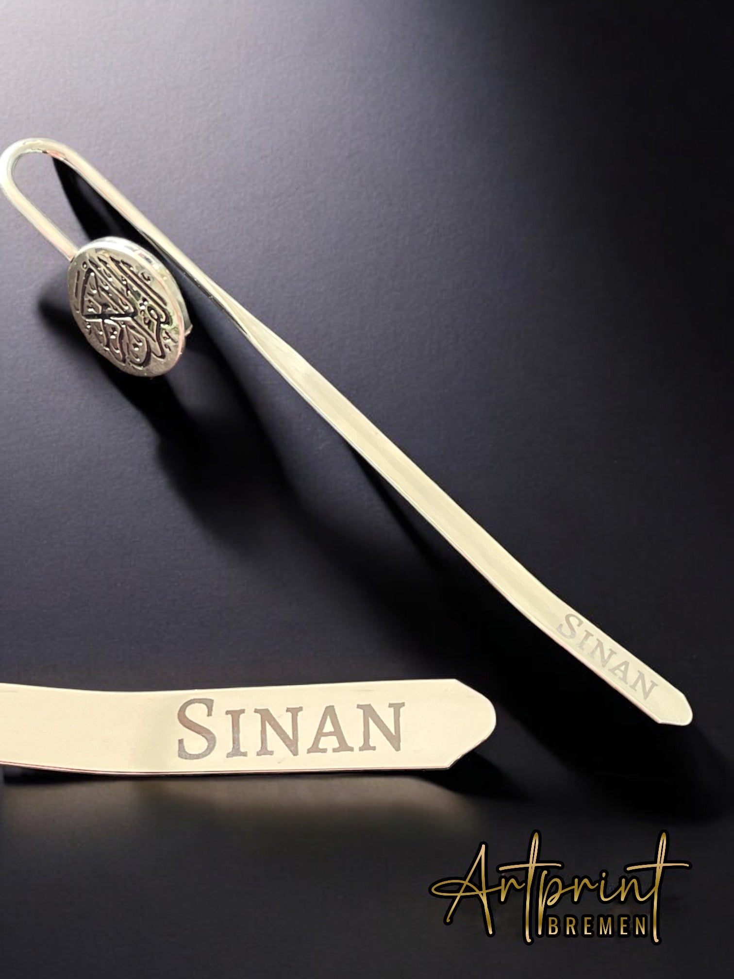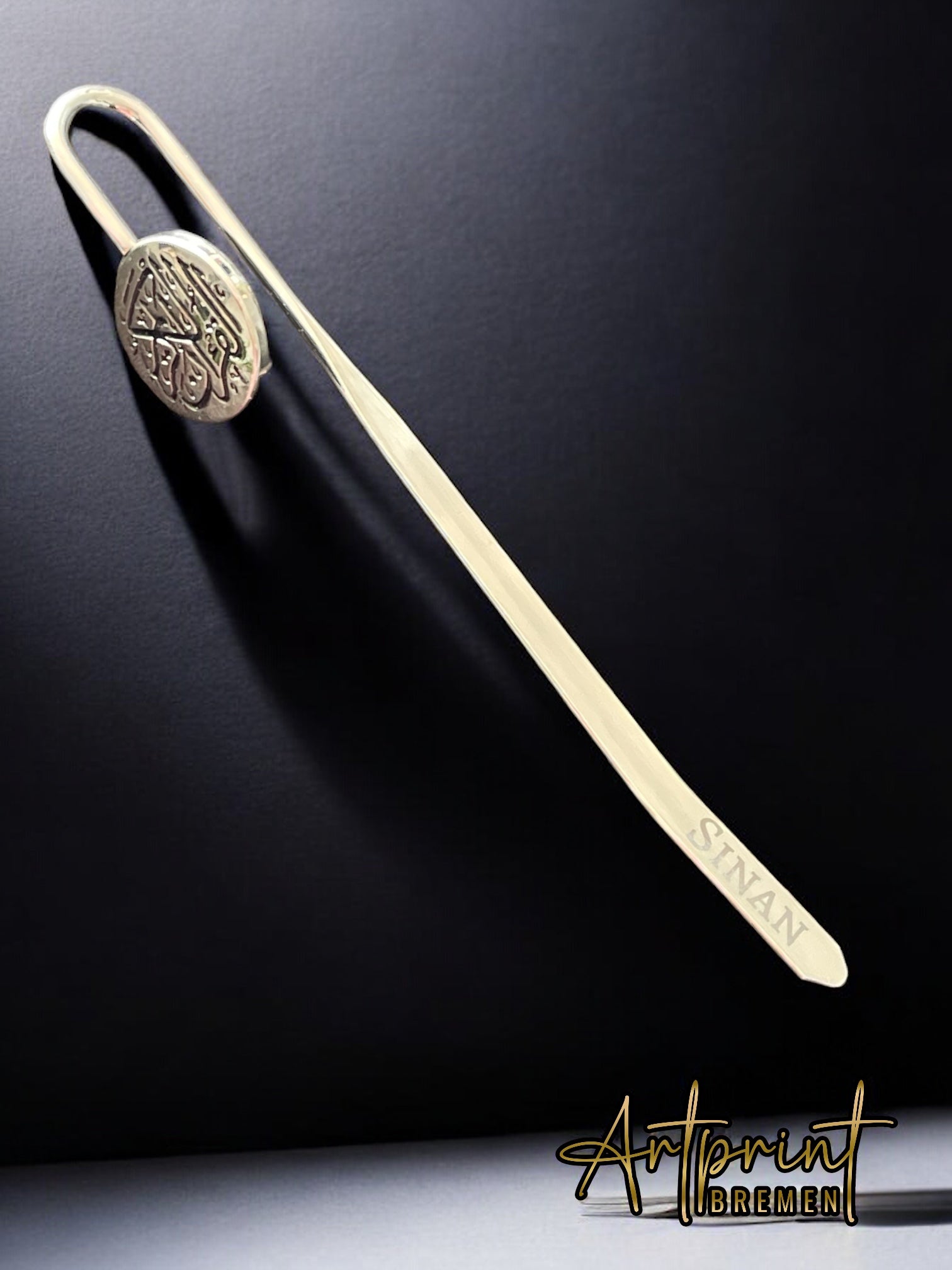 Elegant stainless steel bookmark with Arabic calligraphy. Personalize it with your name (max. 10 characters). Robust, rust-proof, and stylish—ideal for Quran readers or literature lovers.